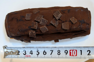 チョコシートを折り込んだもちっとした食感の生地に、チョココーチングとチョコチップをのせた菓子パンです。