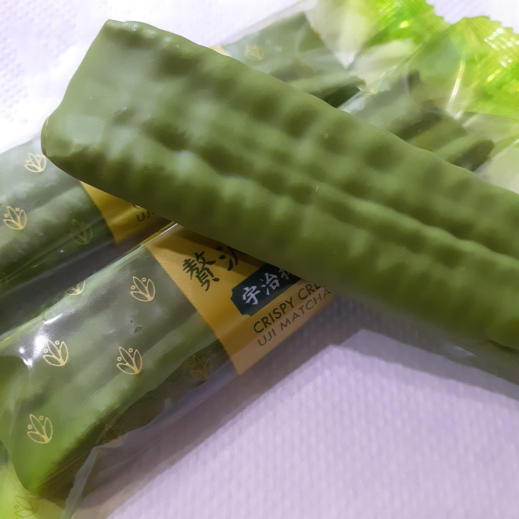 ザクザク感❗すご〜い😳クレープ生地が通常の1.6倍ですって✨周りの抹茶チョコはちゃんと渋みもあるけど、食べやすい🍵チョコ溶けるかなーと思ったけど…30℃の室内でも溶けてない👍これ、大事〜(*´∀`)
