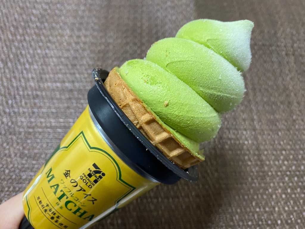 第6位:『セブンプレミアムゴールド 金のアイス ワッフルコーン抹茶 180ml』