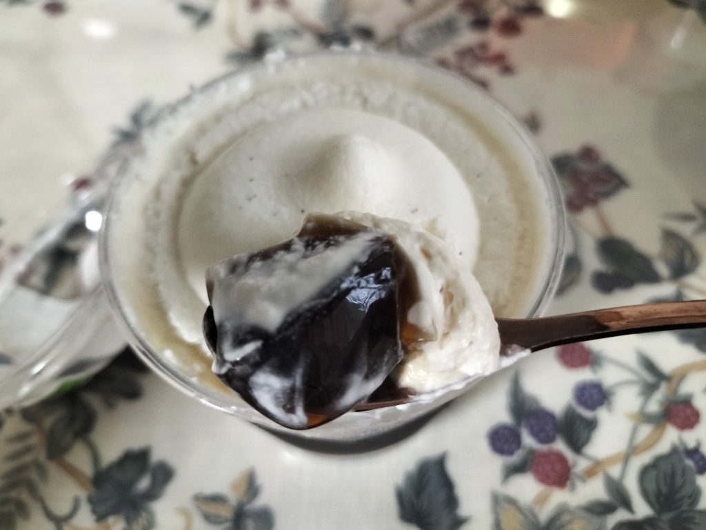 セブンイレブンのとろけるコーヒーゼリーを頂きました。コーヒーゼリーは昔から大好きでいっときハマっていたのですが最近はあまり頂く機会が無かったのですがクリームも感じが何とも美味しそうでとろけるコーヒーゼリーとはどんなふうにとろけるのか知りたくなり久しぶりに購入しました。カップを開けて先ずはコーヒーゼリーのみを掬い頂くと苦味がしっかりのコーヒーゼリー!掬いにくいなぁと思っていたらそれは食べて納得。トロンとしたゼリーは確かにとろけます。クリームと一緒にして頂いてみたら苦味をフワフワクリームがクリーミーで甘さもふわっとして包み込みこれまた味わいもとろけます。これはリピ買い確定。コーヒーゼリーハマる日々が復活しそうです。出典:ふみぞーさんのクチコミ