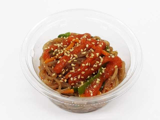 群馬県産こんにゃくの白滝を人参、ピーマンとかねふく明太ソースで炒め合わせました。ピリ辛で旨みの効いた仕立てでおつまみやご飯のお供に最適です。2025/11/3発売 -