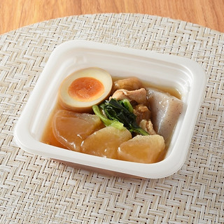 鶏・かつお・昆布のだしを合わせた、だしがしみわたる鶏大根です。こんにゃく・小松菜・味付けたまご入りで、大根の旨みが全体に広がる味わいです。 ※宮崎県、鹿児島県では取り扱いがございません。2025/12/9発売 -